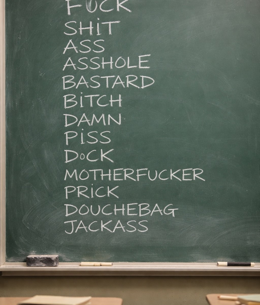 Then she introduced the concept of “bad words.” Words we were never to say. She told us there would be zero tolerance for language that did not belong in her classroom. What counted as a bad word, however, was not left to interpretation. She turned to the board and began writing them out in chalk, one by one, with a precision that felt practiced. Fuck. Shit. Ass. Asshole. Bastard. Bitch. Damn. Piss. Dick. Cock. Motherfucker. Prick. Douchebag. Jackass. The list kept growing, long past the point of instruction and well into spectacle. Even sailors would have felt seen.